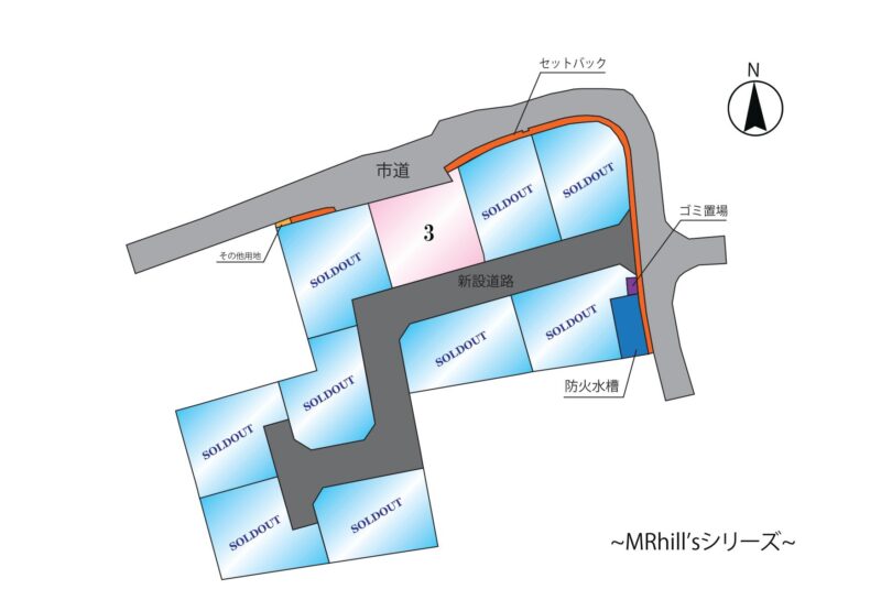 - 東側市道 幅員 約5m 分譲地内道路 幅員 6m