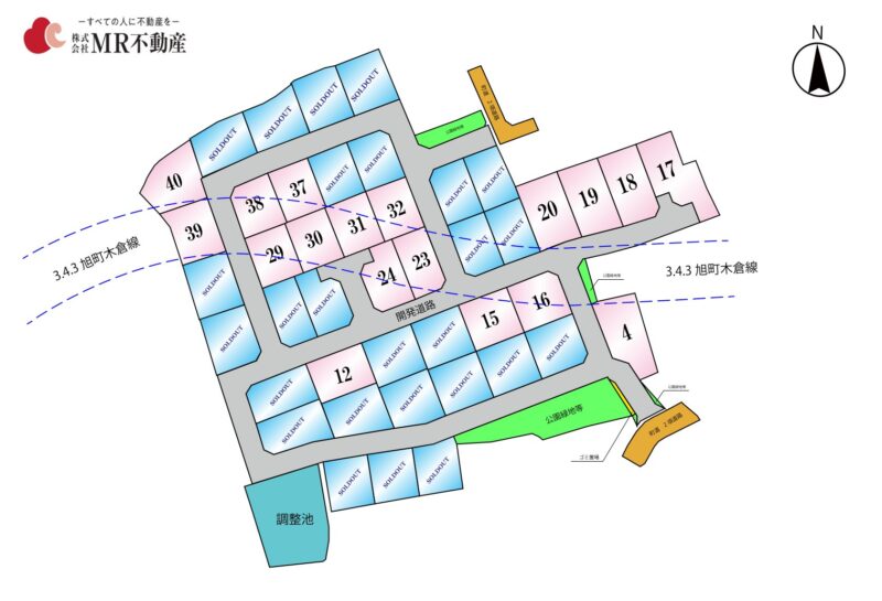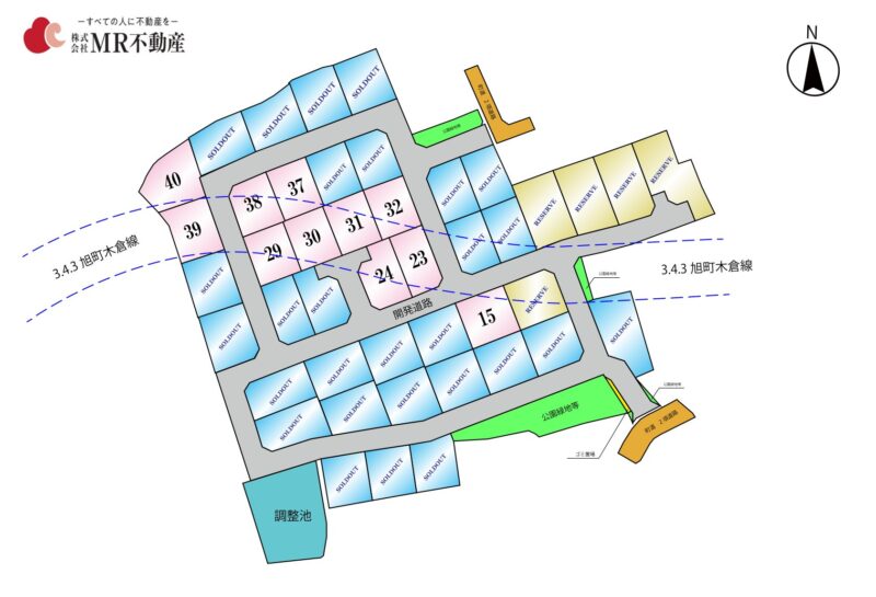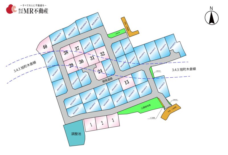 ※開発地内の都市計画道路がかかる区画については、建築確認申請時に都市計画法53条許可申請が必要です。